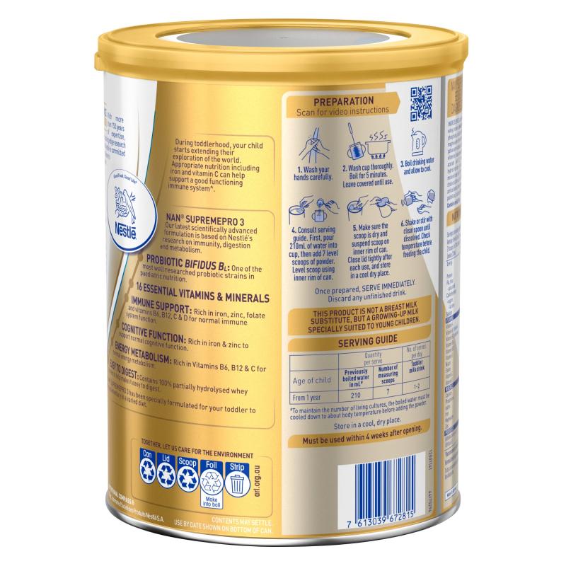 【品牌直供】澳洲雀巢Nestle超级能恩Supremepro 3段适度半水解婴幼儿奶粉 800g