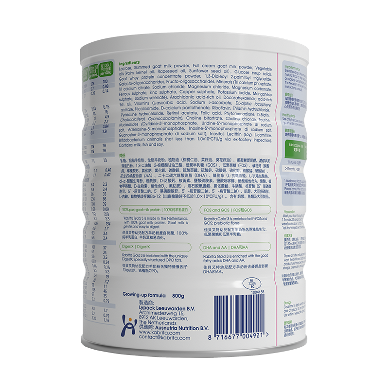 佳贝艾特金装幼儿配方羊奶粉3段港澳版800g