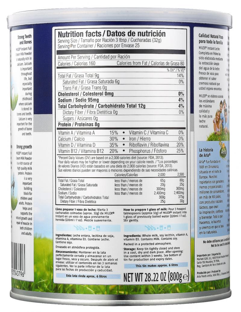 丹麦Arla阿拉美力滋成人全脂速溶奶粉800g
