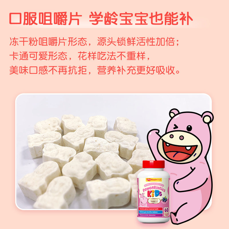 保税直供 【满返】新加坡VitaRealm维乐原肠胃益生菌婴幼儿儿童咀嚼片60粒【保健食品不是药品,不能代替药物治疗】