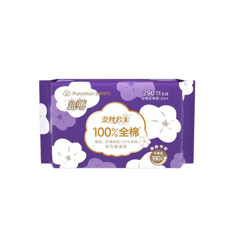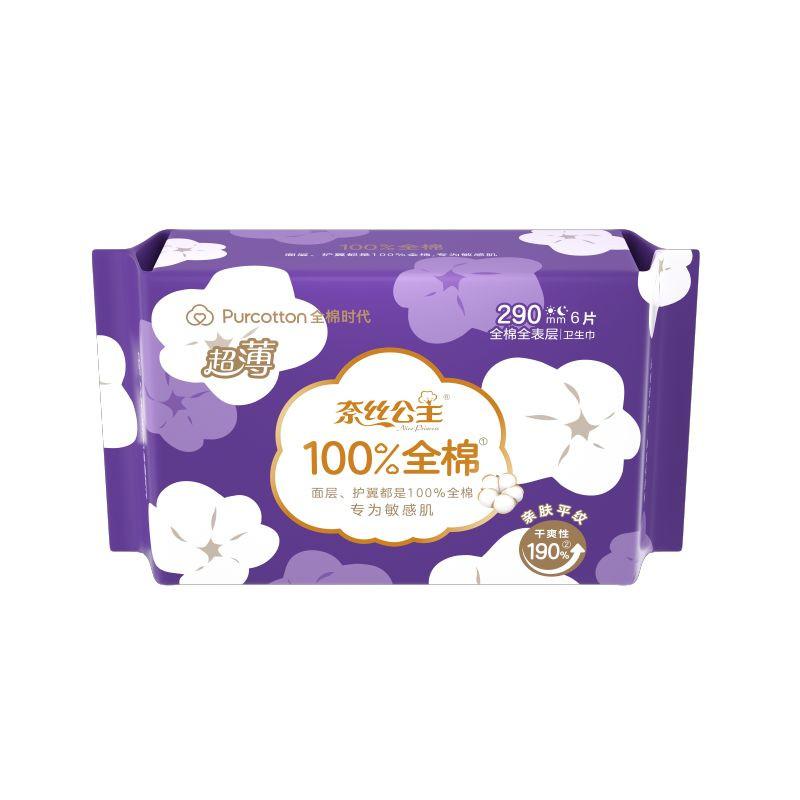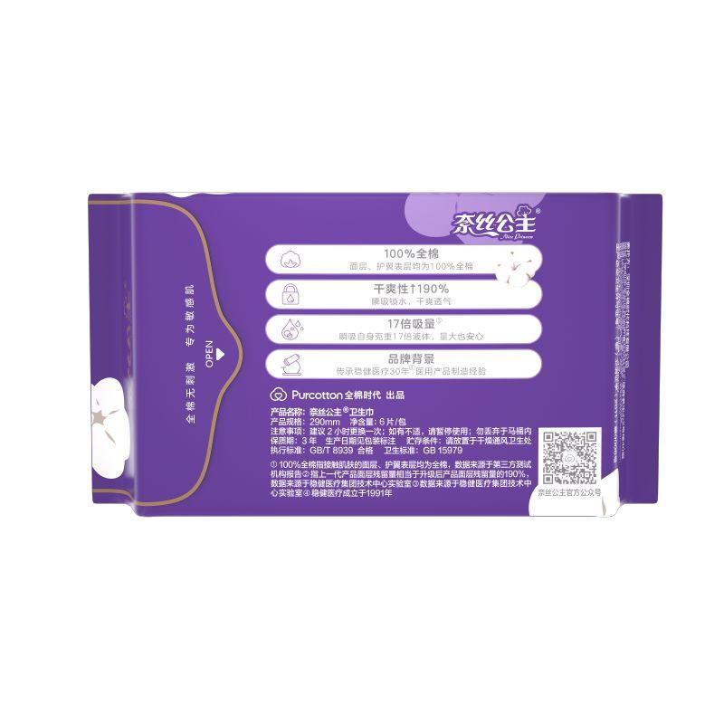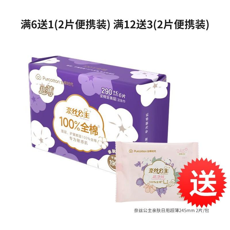 全棉时代 奈丝公主全棉全表层亲肤平纹日夜两用290mm 6片/包超薄