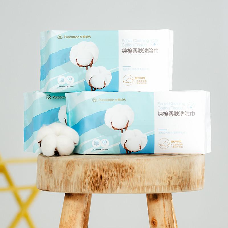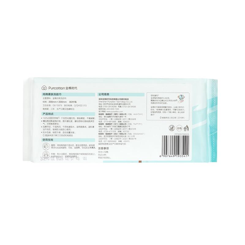 全棉时代 纯棉柔肤洗脸巾60gsm 200X200mm 80片/包